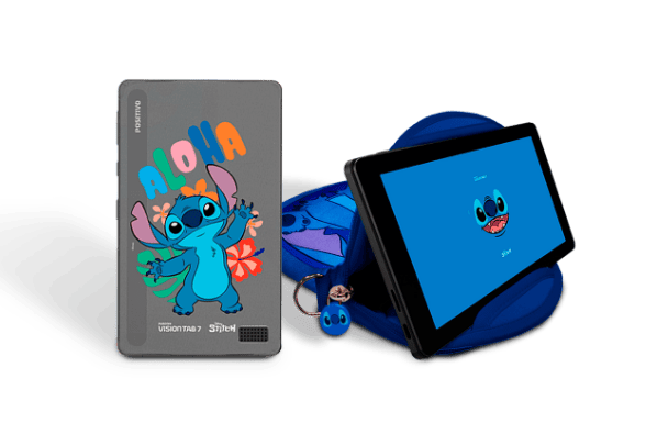 Tablets personalizados: Stitch, Spidey, Minions, Lady Bug e Mudo Bita.