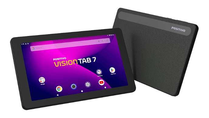 Tela de 7″ IPS compacta, ideal para mãos pequenas e transporte fácil, processador Octa-Core + 3GB de RAM, desempenho ajustado para apps básicos, vídeos, jogos educativos e navegação leve e armazenamento de 64GB, com possibilidade de expansão via micro-SD, espaço suficiente para apps infantis, vídeos e fotos. Vision Tab 7 possui sistema Android 14 Go, leve e otimizado, facilitando a navegação para crianças, controle parental e apps infantis (YouTube Kids) embutidos — ambiente seguro para navegar, assistir a vídeos e jogar.